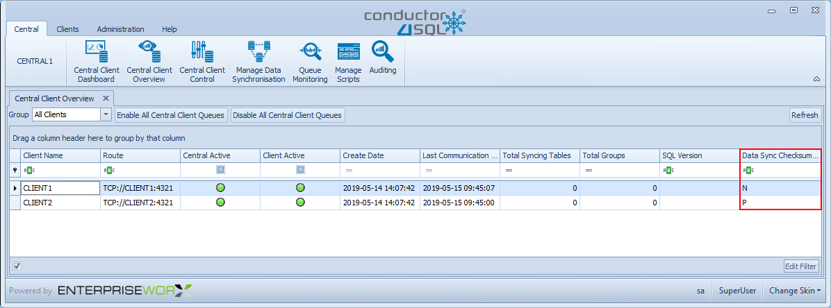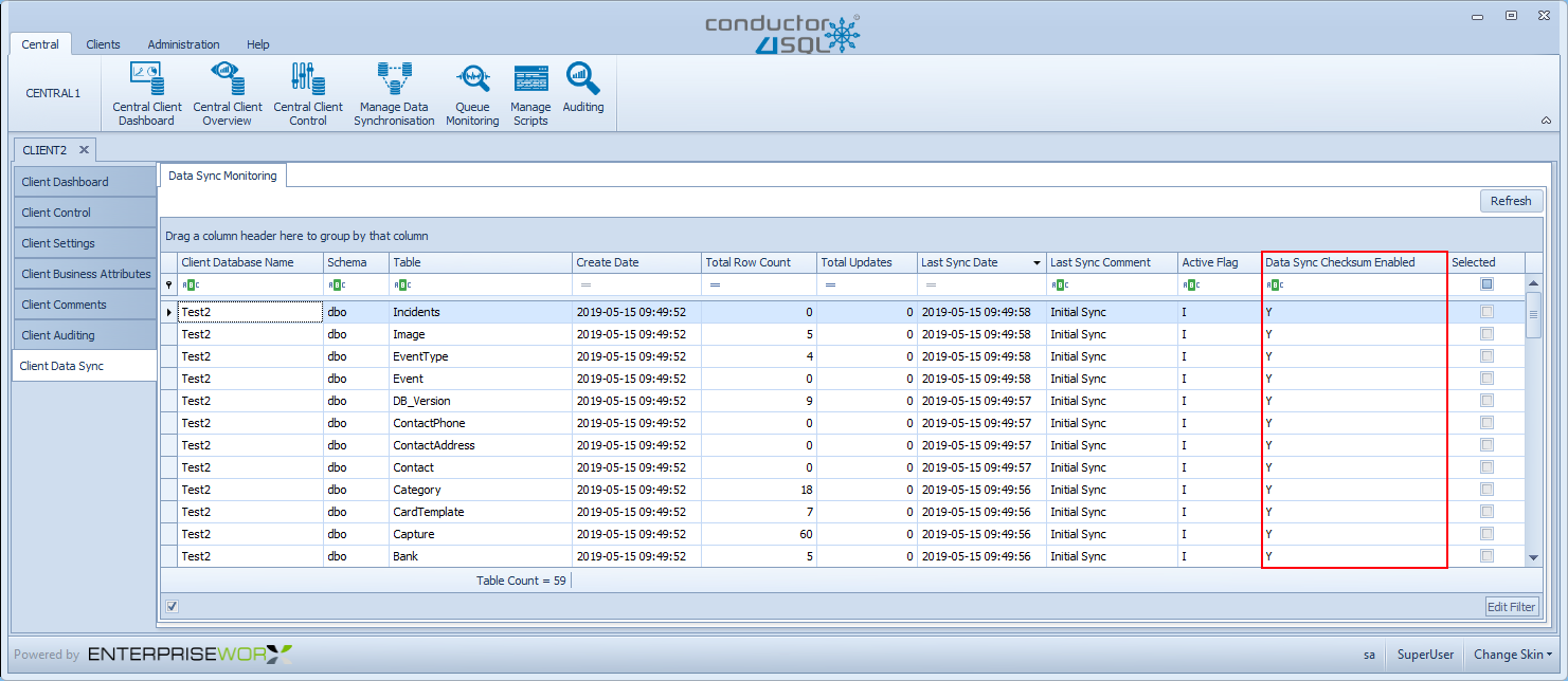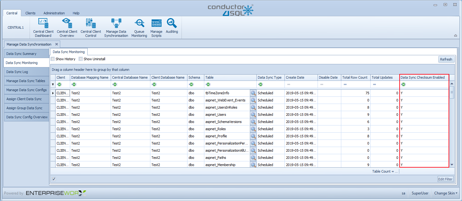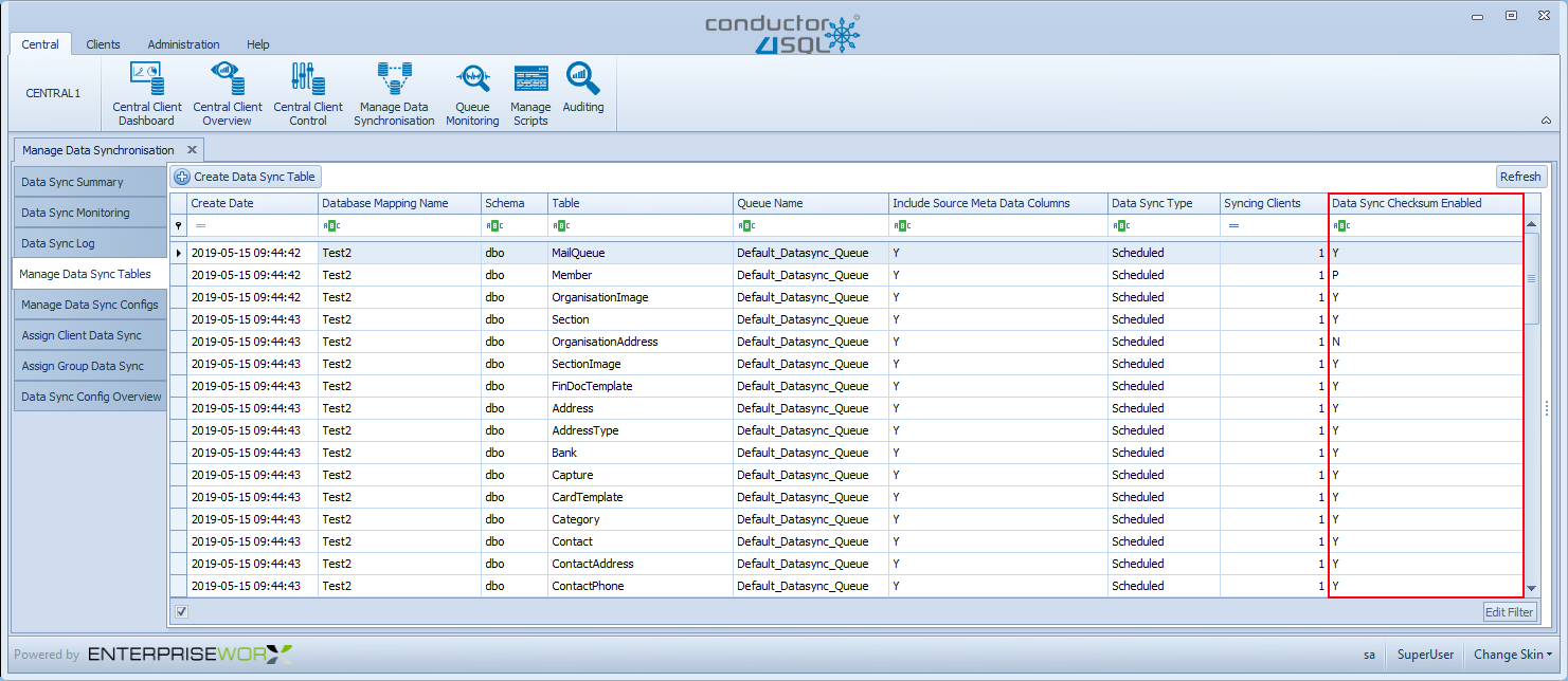 When Conductor4SQL is installed, all tables are excluded for all clients by default. This is to ensure active decisions are made on which tables the checksum is performed. This is achieved by a record that is automatically inserted with values: